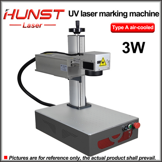 La minimáquina de marcado láser UV portátil Hunst de 3 W y 5 W es adecuada para grabado de plástico, PVC, vidrio, jade, cuero, botellas y carcasas móviles.