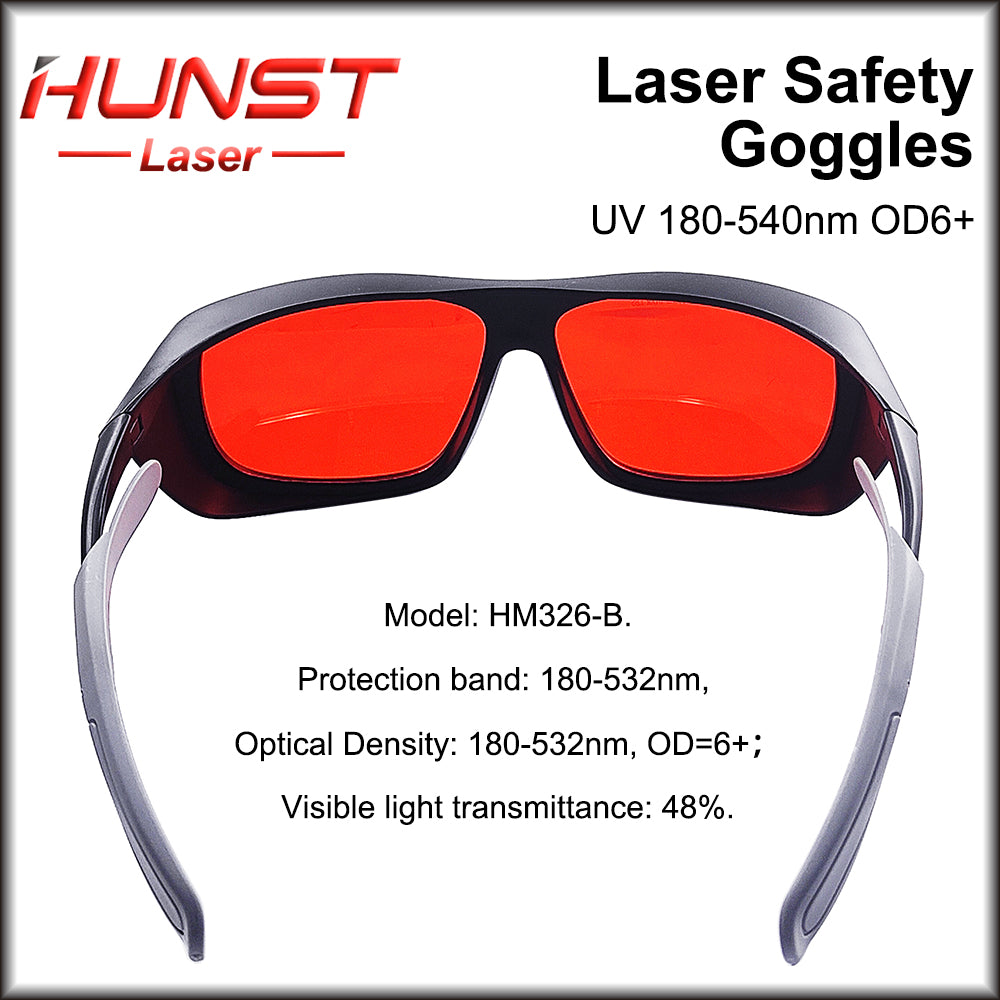 Gafas protectoras de tamaño mediano HUNST para láser de 355 y 532 nm, protección para gafas de seguridad con protección UV y láser verde.