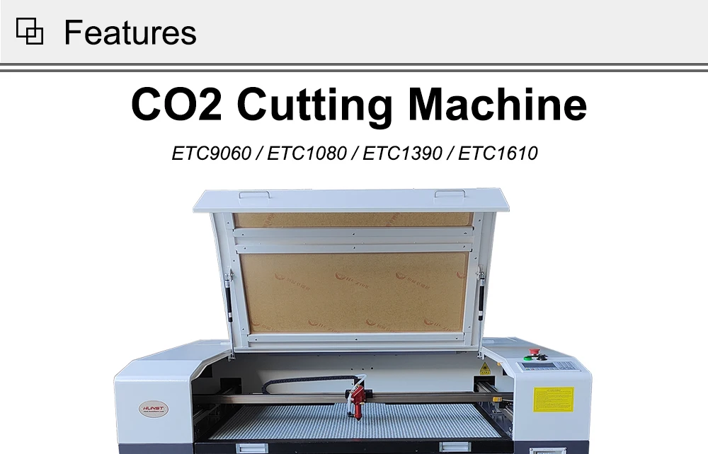 Hunst 80w 100w 130w CO2 Máquina de corte e gravação a laser 9060/1080/1390/1610 Cortador a laser para madeira, tecido acrílico, couro, papel